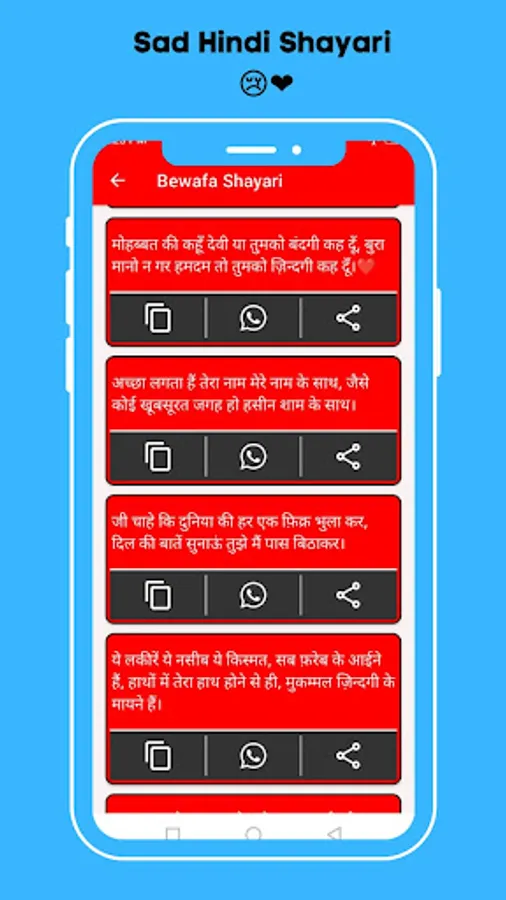 Whenever we feel sad and want to express our sadness, Sad Shayari is the best option to express our inner sadness on social networks. Here we are having a large collection of sad shayari in hindi. You can choose all types of Shayari according to your mood and share it where you want.