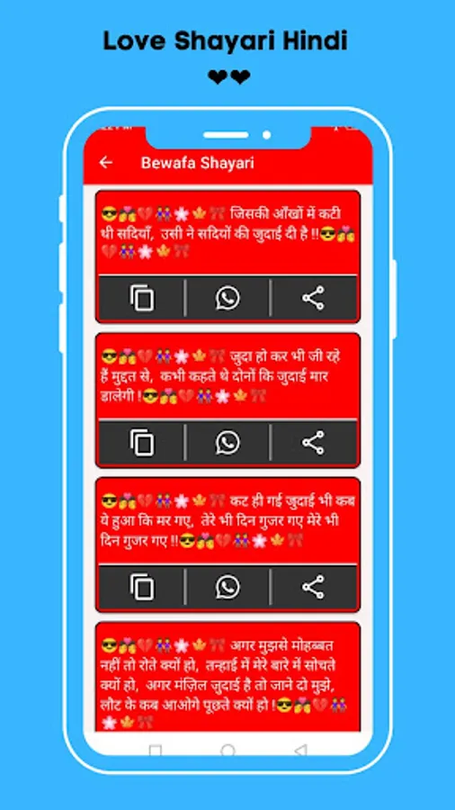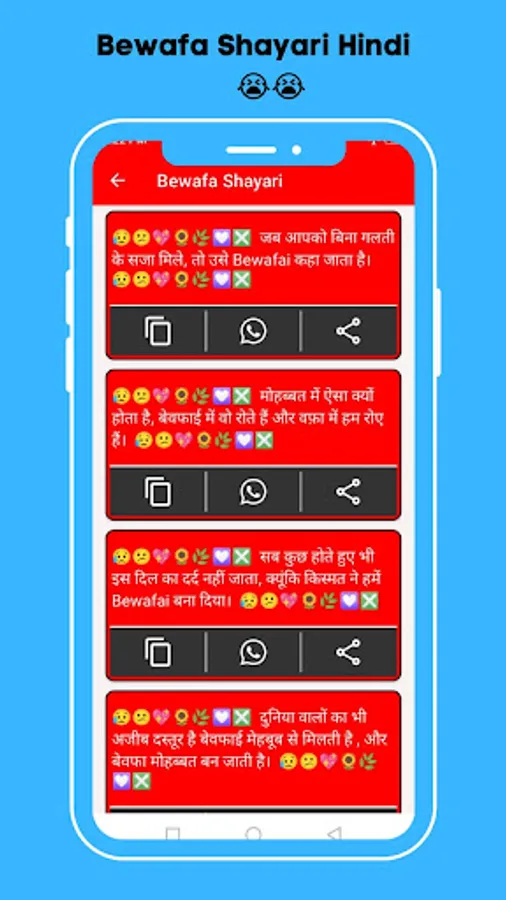 Read The Best Collection Of Bewafa Shayari (Disloyal Poetry) & SMS You Can Share These Bewafa Shayari With Your Girlfriend And Boyfriend Bewafa Shayari (बेवफाई शायरी) Shayari On Bewafai in Hindi Sad Bewafa Shayari.