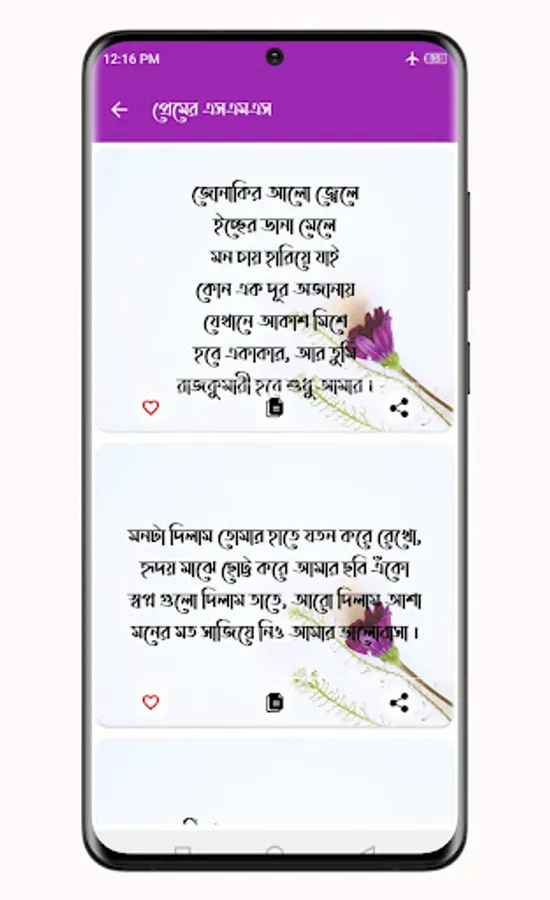 রোমান্টিক কাপলদের জন্য নিয়ে এলাম ভালোবাসার ছন্দ নিয়ে সেরা কালেকশন। প্রেম-ভালোবাসা আমাদেরকে এক অন্যরকম অনুভূতির অভিজ্ঞতা দিয়ে থাকে। যেখানে যেমন থাকে অবর্ণনীয় যাতনা-বেদনা, ঠিক তেমনি থাকে রোমান্টিক অনুভব। প্রেমিক-প্রেমিকারা তাঁদের রোমান্টিক সম্পর্ককে আরও মধুর করতে প্রায় সময়ই ছোট ছোট ভালোবাসার ছন্দ শেয়ার করে থাকেন। যা আপনার প্রেমিক বা প্রেমিকাকে আরও রোমান্টিক করে তোলে। শুধু যে, প্রেমিক-প্রেমিকার জন্যই এসব রোমান্টিক কথার প্রয়োজন হয়, ঠিক সেরকমটা নয়! স্বামী-স্ত্রীর রোমান্টিক মুহূর্তেও আপনি ছোট্ট ছোট্ট রোমান্টিক ছন্দ দিয়ে আপনার পার্টনারকে খুশি করতে পারেন। আবার কাউকে প্রেমে ফেলানোর আগেও প্রেমের ছন্দ কবিতার জুড়ি নেই!