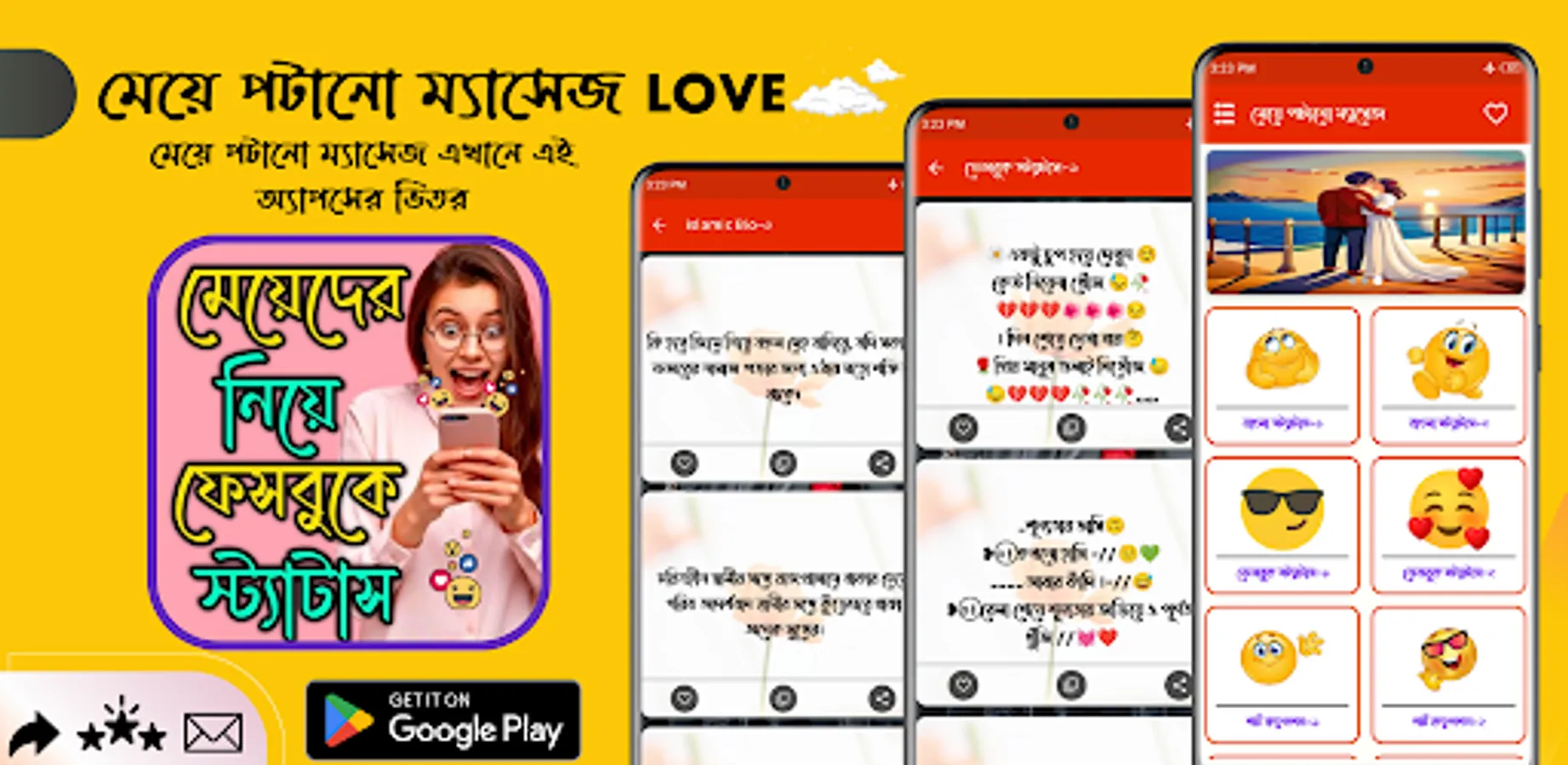 আজকের এই অ্যাপসটির মাধ্যমে আমরা আলোচনা করব মেয়েদের নিয়ে ফেসবুকে স্ট্যাটাস সম্পর্কে। আমাদের আজকের এই অ্যাপসটির মধ্যে আপনারা পেয়ে যাবেন মেয়েদের নিয়ে নতুন নতুন এবং বাছাইকৃত ফেসবুক স্ট্যাটাস।