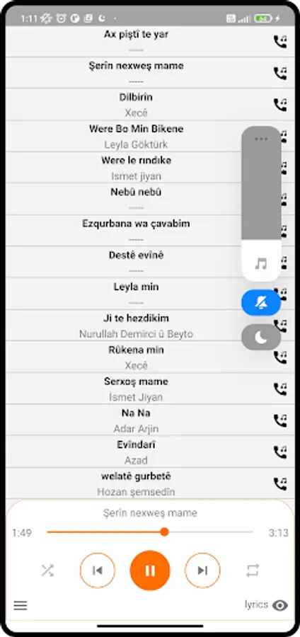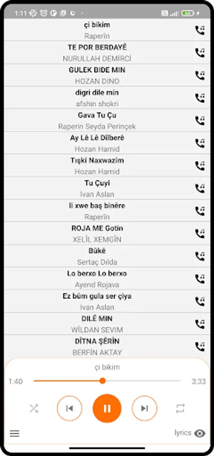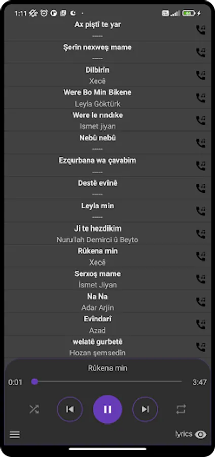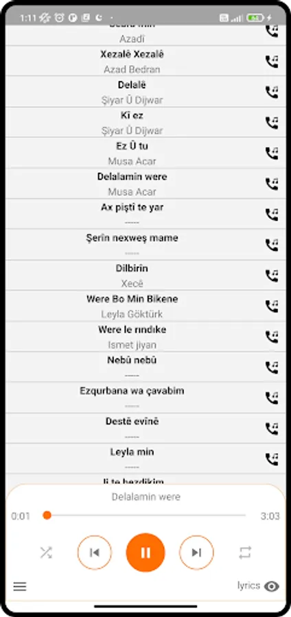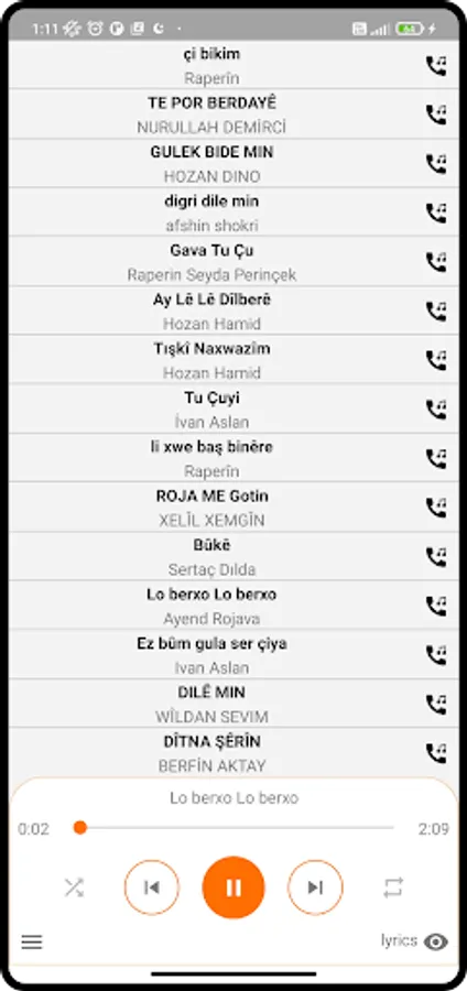We welcome you to the Kurdish Ringtones and Songs application, which offers you more than forty Kurdish songs with words with the ability to set the songs as a ringtone and enjoy the songs without the net, with a new design that offers you the night mode through which you can use the application with black colors to relieve pressure On the eyes at night, and these features are most used in the application of Kurdish songs and ringtones, and of course there are many useful features in the application such as sharing, rating and more applications through the menu in the Kurdish songs application.