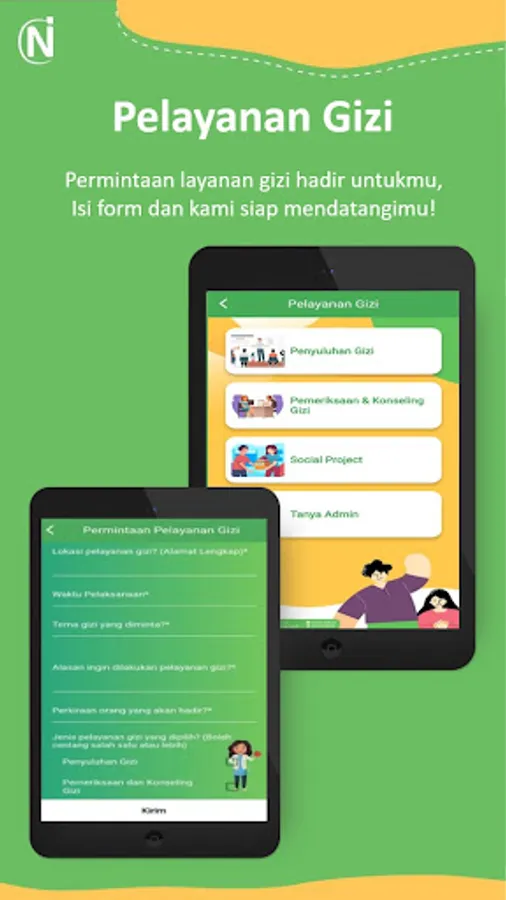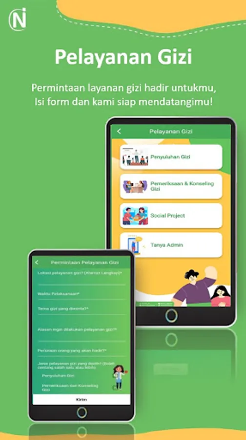 Nutrition service is an offline nutritional service call request feature. We provide nutrition service request forms in the form of nutrition counseling, nutrition examination and counseling, as well as social projects.