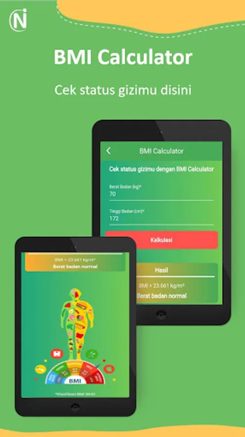 BMI Calculator is a feature used to check nutritional status using the Body Mass Index method that is easy for users to use.