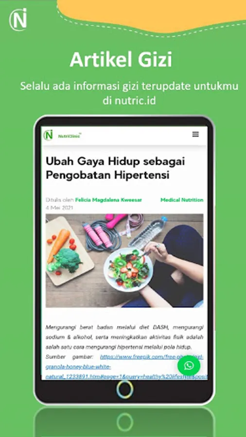 Nutrition Articles is a feature that can be used by users to access online articles containing the latest information about nutrition, food and health.