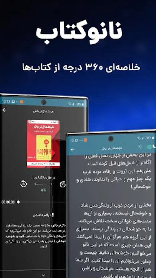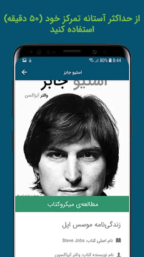 - از میکروکتابهای ۵۰ دقیقهای به صورت نوشتاری و صوتی لذت ببرید
