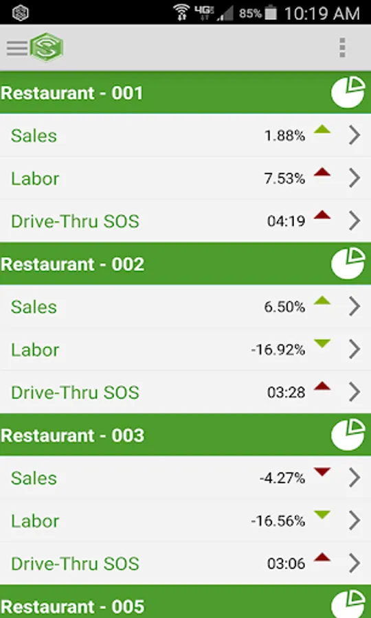 With our mobile restaurant performance you can make real-time decisions on actionable items. Get a quick glance of all the restaurants that are important to you then drill down