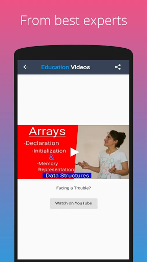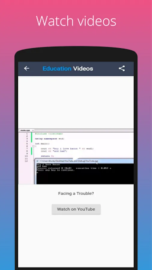 With a huge collection of 100+ videos and many courses, all your programming needs are bundled in a single app for your daily practice.