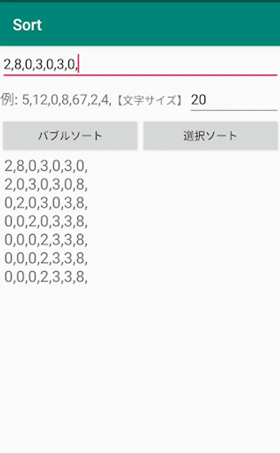 After entering a number string, specify the algorithm. Sort while displaying the transition during sorting.
