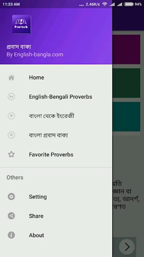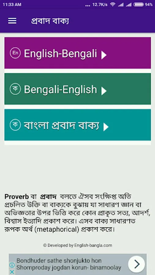 প্রবাদ বাক্য (Bengali & English Proverb) (offline application) is an official app of English-bangla.com for learning English and Bengali proverbs.