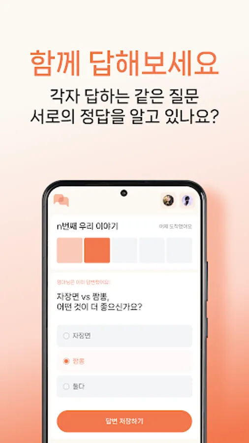 Register with your loved one! Then, every two or three days, a set of five questions is given to both you and your question partner. Once both parties answer all questions in a set, each other's answers are revealed. You can explore their answers to interesting questions, designed specifically to introduce new topics for further conversation and to have fun. To help in your exploration, Answerlog has put together a list of interesting contents. Scroll through and have fun!