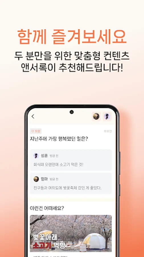 If you answer the Q&A, common content for parents and children users is recommended based on the keywords of the two people's answers. Enjoy the content that encompasses the tastes of both users and talk together!