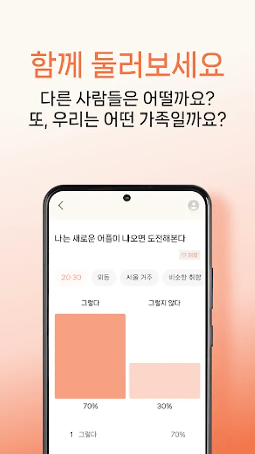 Antherlock makes it easy to maintain a fun and friendly relationship between adult children and their parents. Parents and children connect one-on-one to answer casual and fun Q&A questions given every 2-3 days, and these answers are shared only with the connected person. This allows them to learn more about each other and strengthens the bond between family members.