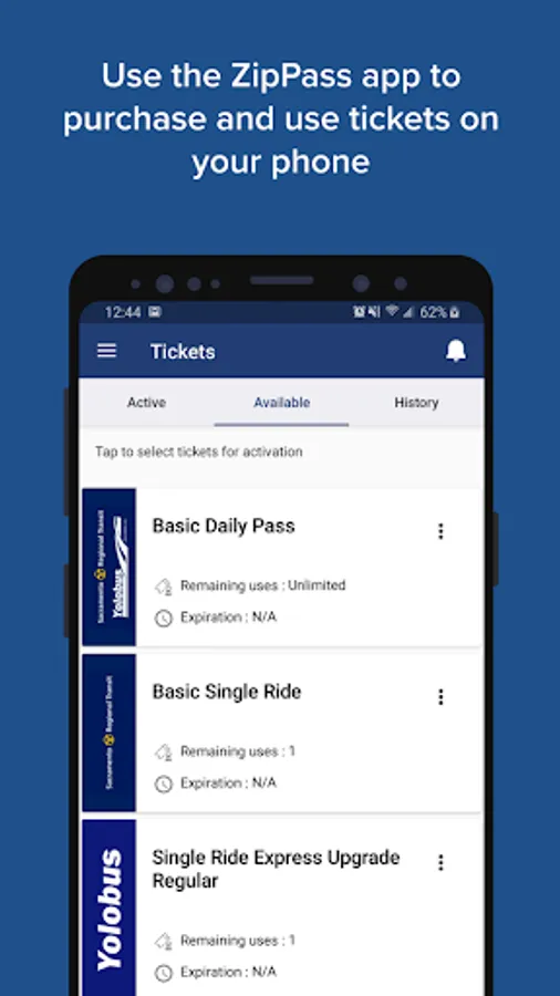 The ZipPass App allows riders to buy fares using their mobile device. Tickets can be purchased from anywhere at any time and can be used to board the bus or light rail.