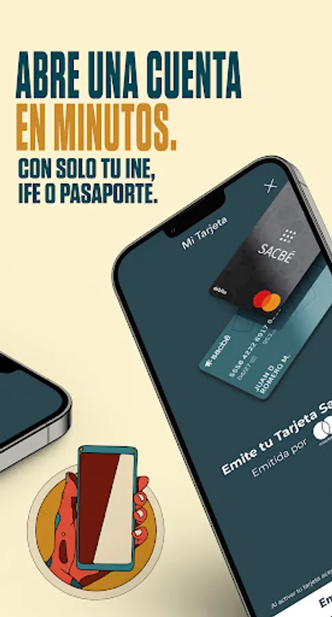 Download the application and open a free SACBÉ Account, with just your INE credential and your mobile in a matter of minutes.