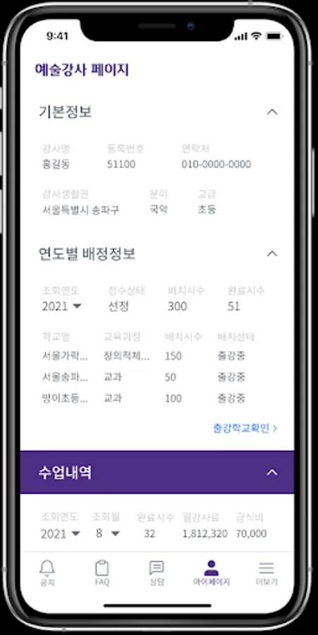 We have developed a smartphone application to provide efficient work support services to art instructors and teachers in charge of operating schools in Seoul.