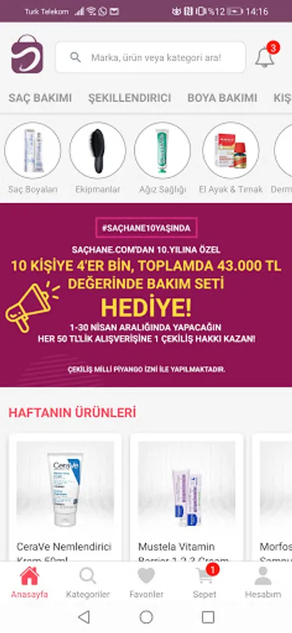 Find the hair and personal care products you are looking for among hundreds of unique products and categories, enjoy special discounts and promotional prices with the Saçhane mobile application.
