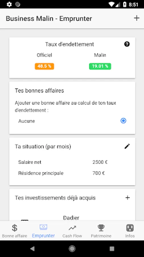 The application also allows to calculate the debt ratio, to help convince banks.