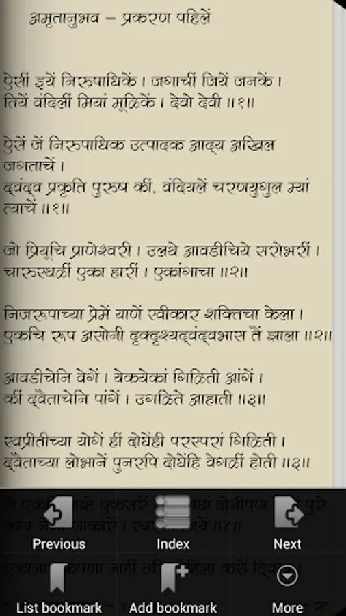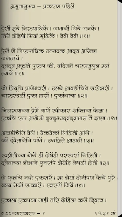 Amrutanubhav or Amritanubhav (Marathi: अमृतानुभव) is a composition by the Marathi saint and poet Dnyaneshwar during the 13th century. It is considered to be a milestone in Marathi literature. Shree Mauli, more famous for 'Shree Gyaneshwari' wrote 'Amrutanubhav' (or 'the experience nectar': nectar being the adjective for the 'experience') at the behest of his Sadguru Shree Nivruttinath Maharaj.