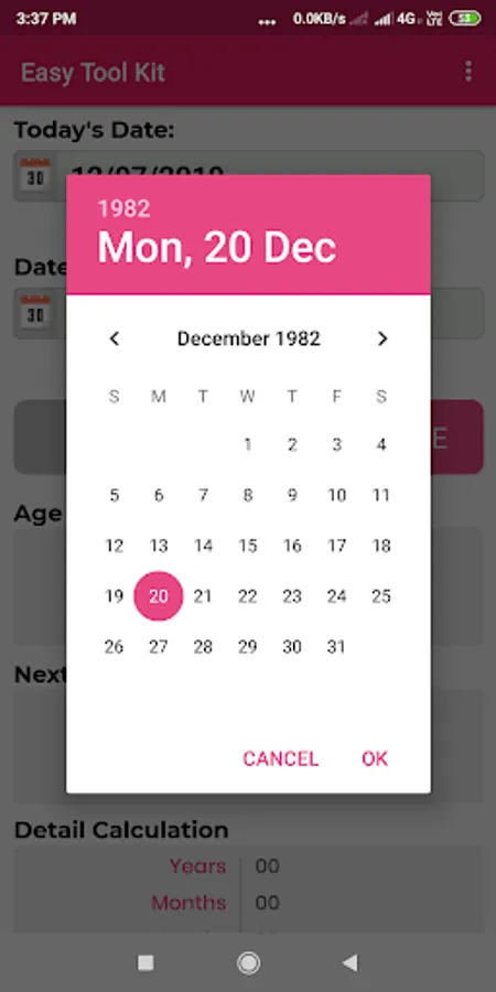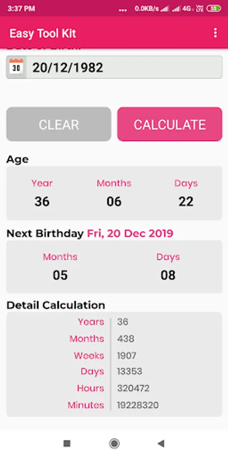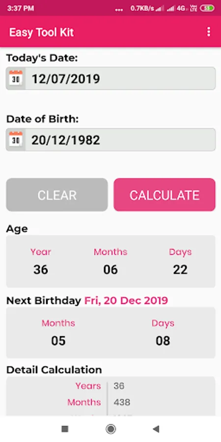 Easy Tool Kit is a very easy age calculator to calculate your actual age and find days between two dates. Finding difficult to calculate your exact age in years, months and days from your date of birth? Use this amazing Easy Tool Kit Age Calculator app to calculate your exact age in years, months and days and even seconds using your date of birth.