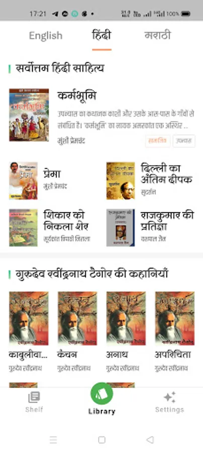elib India ki Apani Pocket eLibrary you can read Indian Vernacular language literature in Hindi, Marathi as well as English. In the coming days you can read content from more Indian Vernacular Languages like Gujarati, Bengali, Kannada, Tamil, Telugu, Malayalam and Punjabi.