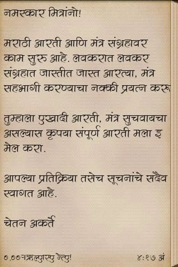 We are working hard to add more Aarti, Mantra and Shloka. If you like to suggest any Aarti, Mantra and Shloka please mail me.
