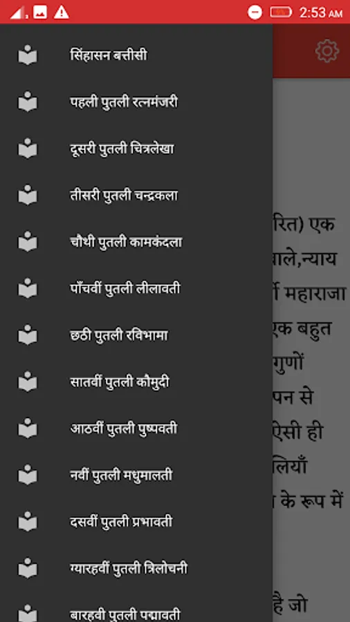 The title literally means "thirty-two (tales) of the throne". In the frame story, the 11th century king Bhoja discovers the throne of the legendary ancient king Vikramaditya (also known as Bikramjit). The throne has 32 statues, who are actually apsaras that had been turned into stone due to a curse. Each of the apsaras tells Bhoja a story about the life and adventures of Vikramaditya, in order to convince him that he is not deserving of Vikramaditya's throne.