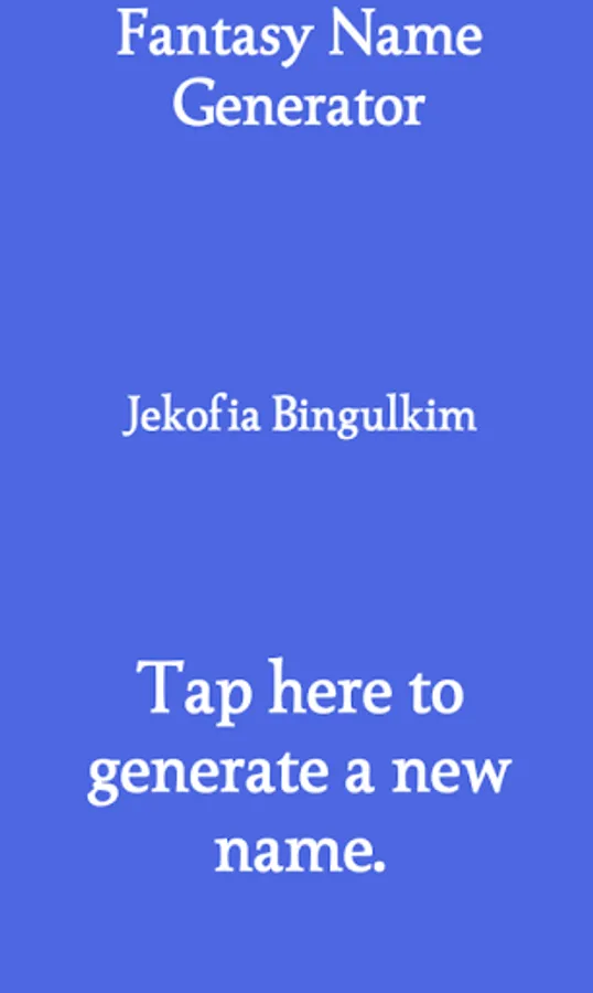 Fantasy Name Generator is a simple name generator that can be used to generate awesome names for your fantasy needs such as RPG games, story characters or adventures!