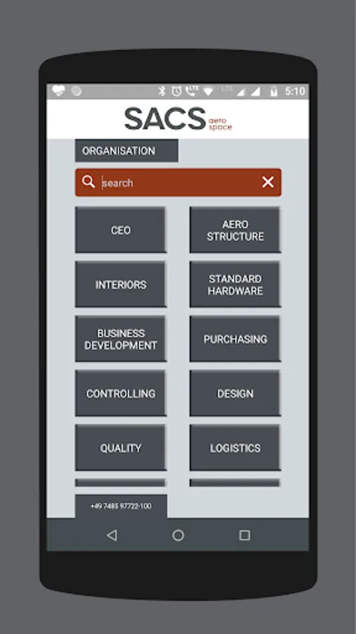 The SACS Aerospace Contact App is an internal tool for direct contact to the company's employees.