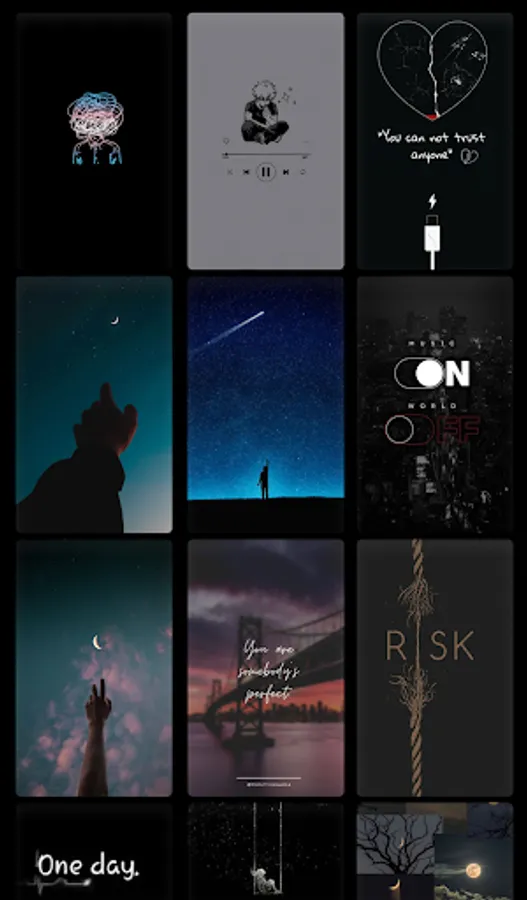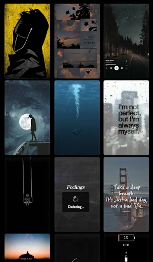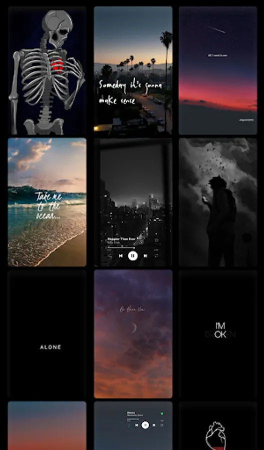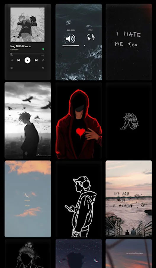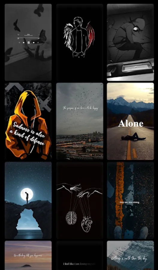 Some of the collection inside this application are; aesthetic (artistic images full of emotions), sad quotes, black, ...ect.
