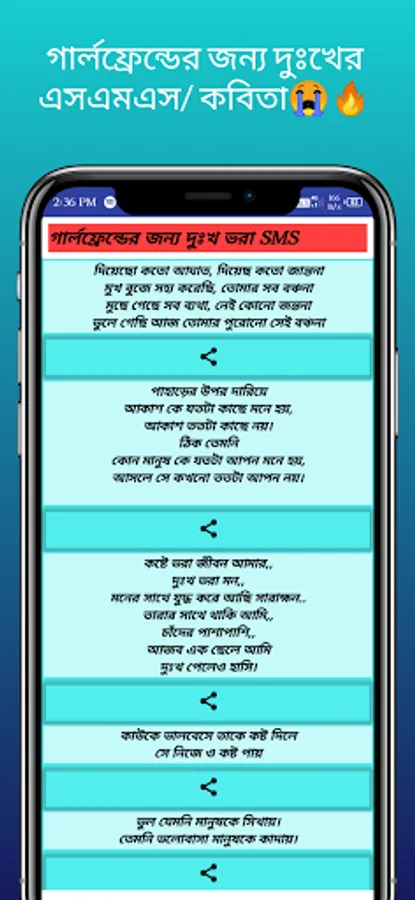 Breakup Sad Shayari bengali App is Collection of Bengali sad SMS .this app is fully free for everyone .one click to share any sms or Shayari to everyone. this app is work also without internet.