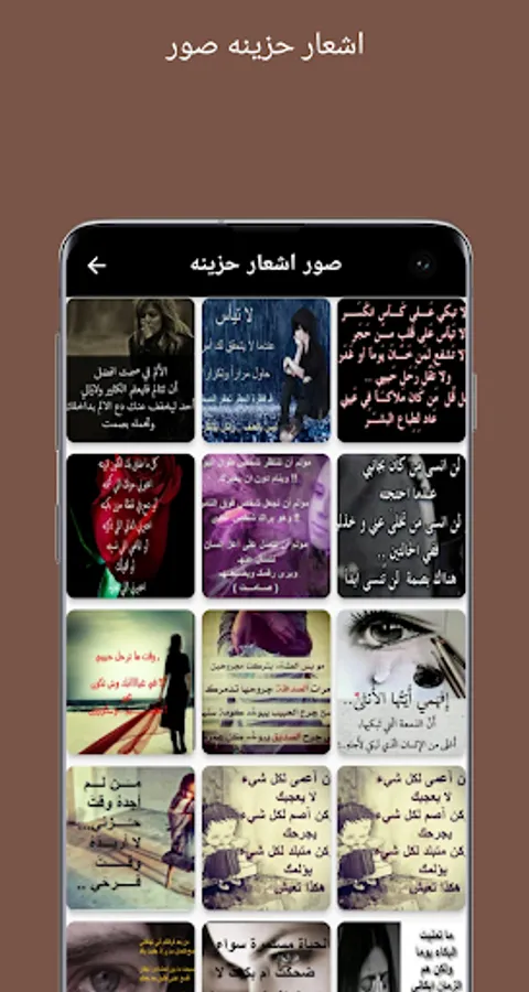 The application presents a collection of sad poems, an encyclopedia of sad thoughts, and the most powerful quotes from sad phrases.