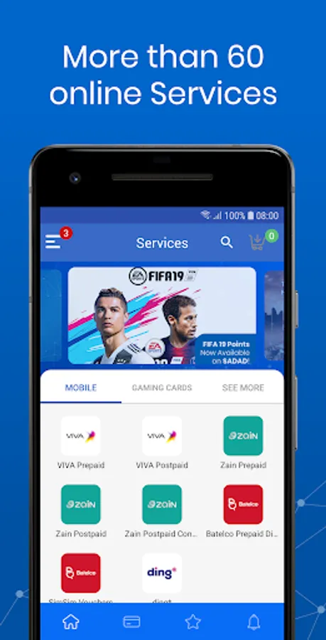 • Recharge prepaid VIVA, Zain, and Batelco numbers