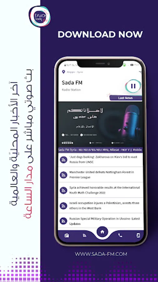 The application broadcasts Sada FM Radio, in addition to displaying the latest local, Arab and international news, in addition to an explanation of radio programs, their schedules, and how to communicate.