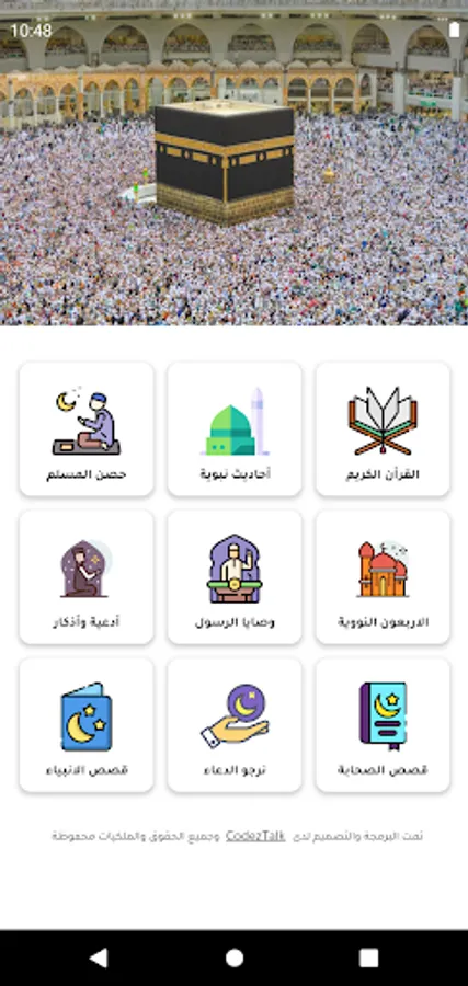 You can also read the dhikr through it, and it also contains prophetic hadiths, the forty nuclear, the fortress of the Muslim, the commandments of the Messenger, may God bless him and grant him peace, supplications and dhikr. The application also contains the stories of the prophets and messengers and the stories of the Companions