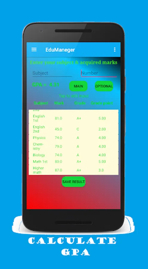 Many students face trouble to calculate their CGPA/GPA results, as it takes few things to remember but often it’s not possible to use them in appropriate But CGPA/GPA grades indicates how high you scored in your courses on average. This tools might be handy for you to track and manage your results and see the expected progress of your studies. This is very initial project of EduManager with initial features but more will be added letter, so hurry and download make your life simple.