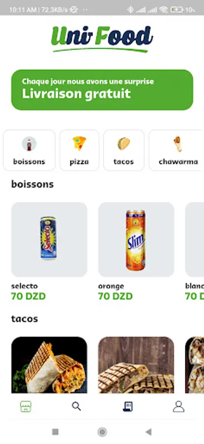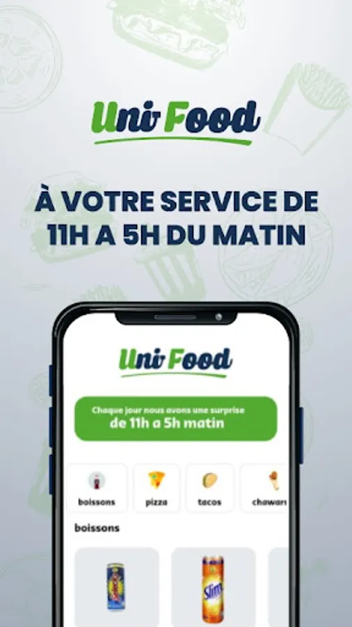 Unifood is a delivery application that allows you to buy and have any product delivered to Algiers in 40 minutes.