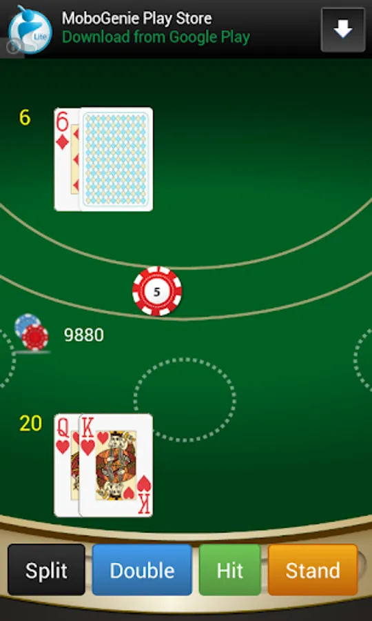 * After the cards are dealt if two cards in your hand have the same numerical value, you could split them by putting the same amount of bet while starting the game and have two separate hands.