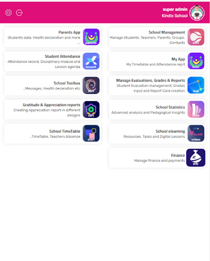 Kindix is the formation of creative technology and deep educational understanding. it was developed out of a wide pedagogical system perception and presents a plethora of advanced management tools for schools.