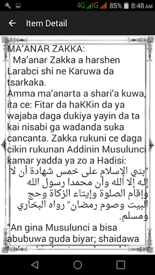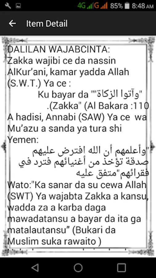 Godiya ta tabbata ga Allah Madaukakin Tsarki, Tsira da Amincin Allah su kara tabbata ga fiyayyen halitta Annabi Muhammad (SAW) bayan haka, Wannan dan littafi yana bayani ne game da Zakkah a addinin Musulunci cikin harshen Hausa, domin amfanin Musulmi kasancewar wannan hanya mafi sauki wajen yada sako a cikin fadin duniya ga miliyoyin mutane, sabanin tsohuwar hanya ta buga littafi a rarraba shi, da fatan za’a samu Wani wanda zai dauki nauyin wannan aiki a matsayin Sadakatul Jariya domin cigaba da gudanar da wannan aiki na alkhairi ta yadda wata rana zai zamanto akwai tarin littattafai masu yawa cikin harshen Hausa. ina kuma aiki kan update a yanzu dan ya zama daidai da app di na, na Hajj da Umrah domin dada saukaka shi ga mai karatu.