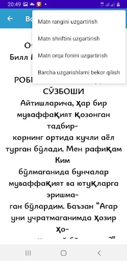 га ўргатаётганини ўзи ҳам амалда қилади. Мен бу китобга