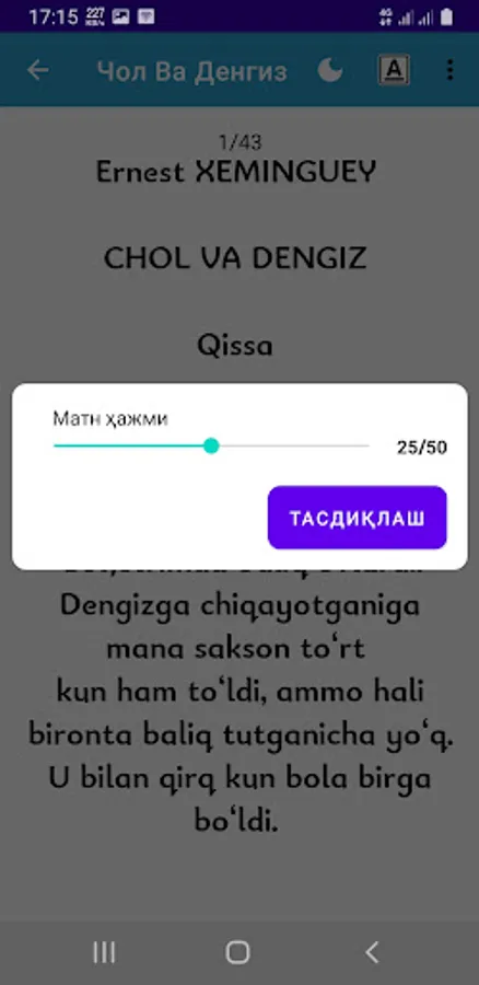 kun ham to‘ldi, ammo hali bironta baliq tutganicha yo‘q. U bilan qirq kun bola birga bo‘ldi.