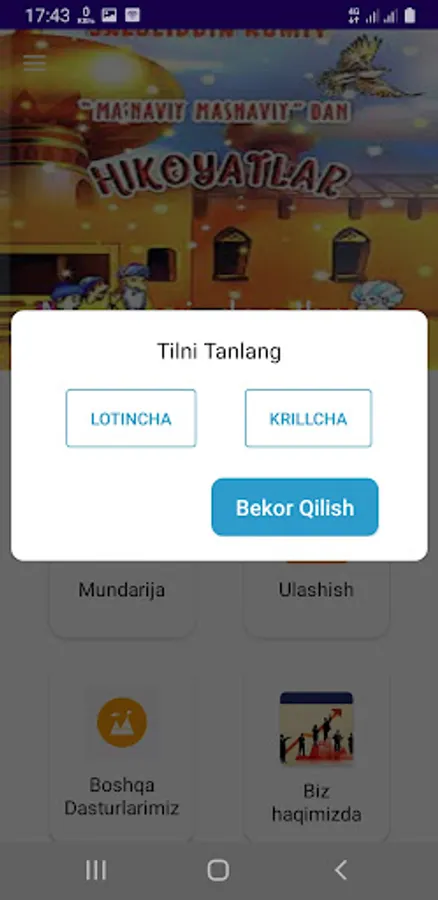 — Holdan toydim. Ovga yaramayman. Bor, menga bir eshak ovlab keltir. Birgalikda