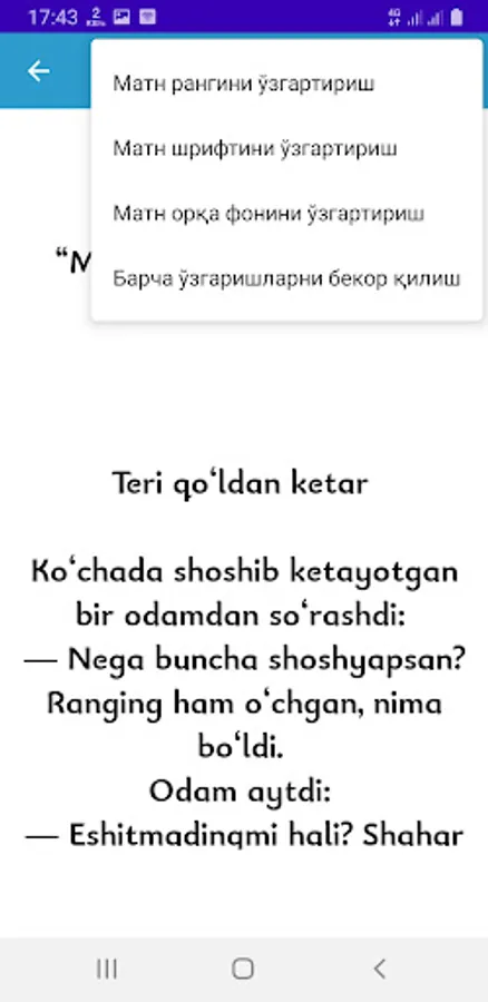 — Nega buncha shoshyapsan? Ranging ham o‘chgan, nima bo‘ldi.