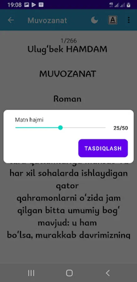 Asarning nomi, undagi men anglagan asosiy mazmun esa jism va ruhdan iborat insonning ikki xil muvozanat- din va dunyo ishlari hamda moddiyat va ruhoniyat aro muvozanat o`rnata olishi muhimligi haqida. Rumiy boboning “agar danakni chaqib, mag`zinigina eksang, nihol unib chiqmaydi. Urug`ning tuproqni yorib chiqishi uchun ham mag`iz, ham qobiq birday muhim” mazmunidagi gaplari yodimga keladi. Maktab darsliklarida esa insonning moddiy va ma`naviy hayoti qushning ikki qanotiga qiyoslangan edi. Yaqinda matnshunoslik fanidan eski o`zbek yozuvidagi ajib bir matnni o`qidik. Unda yozilishicha, payg`ambarimiz Muhammad (s.a.v) ga qaysidir oyat nozil bo`lganida rasulullohimiz yonlarida turgan hatto tirikligidayoq jannat xushxabarini eshitgan sahobalar “eh, koshkiydi, ona qornidaligimdayoq o`lib ketgan bo`lsaydim”, “eh, koshkiydi, inson bo`lib tug`ilmaganimda edi” kabi afsusdan iborat gaplarni aytishadi. Haa, to`g`risi, odam bo`lib yashash juda qiyin. Ba`zan qalbimda g`alati talato`pni his qilaman, ruhiy muvozanatimni saqlay olmayman. Rislig`oy Hotamovaning mashhur “Inson ruhida ham qiyomatlar bor” she`rini o`qiganimdan keyin ruhimdagi o`sha voqelik nomining qiyomat ekanligini anglab qoldim. Asarda zamona zayli bilan Yusuf moddiy ehtiyojlari qondirilishiga muhtoj holda, Yusufning talabalik davridagi Miraziz ismli do`stining xotini Zahro esa to`kin hayot ichra, hashamat ichra ma`naviy to`kinlikka ehtiyoj sezib yashaydi. G`alati-a? Yo`g`-e, aslida ham odamning katta harflar bilan yoziluvchi haqiqiy INSON bo`lib yashashi uchun ham ma`naviyat, ham moddiyat birday muhim.