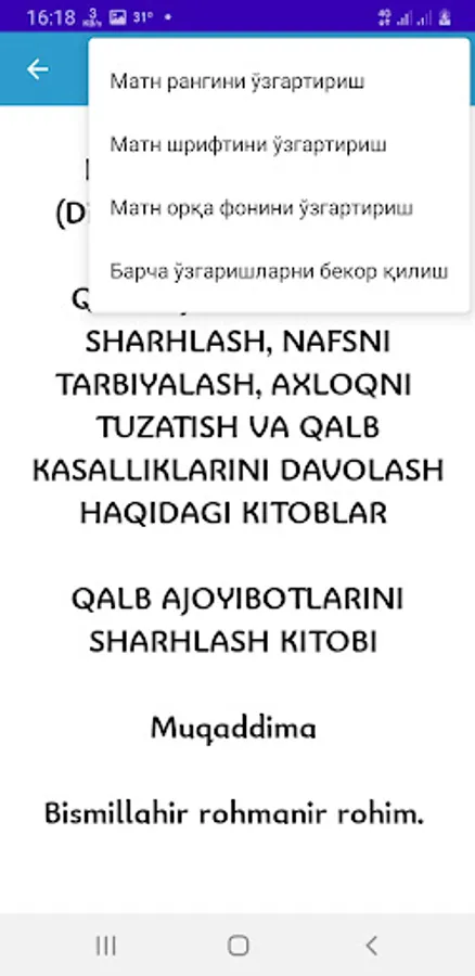 chiroyi, kamoli va faxridir, oxiratda esa tayyorgarligi va zaxirasidir. Albatta inson