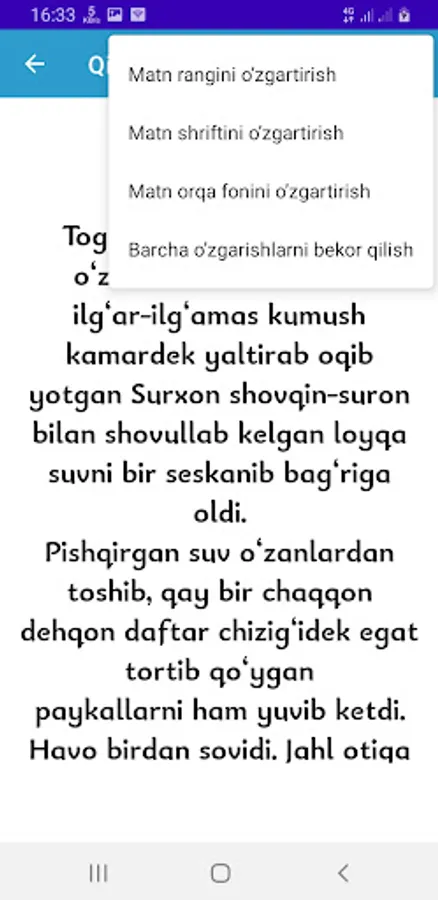 burdi. Ammo Hamdamning o‘z “mashg‘ulot”ini to‘xtatish niyati yo‘q edi. Juvon ham qiziquvchanlik