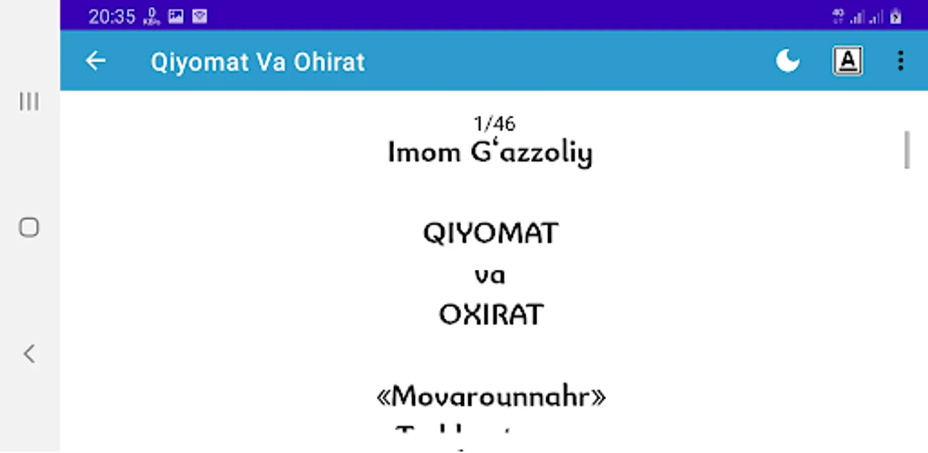 Ushbu asarda dunyo o‘limi, insonlarning bir holdan boshka bir holga qanday o‘tishlari naql etilgan bo‘lib, bu so‘zlarni Alloh taolo va Qur’oni karim oyatlari bilan sahih hadislar tasdiqlaydi.
