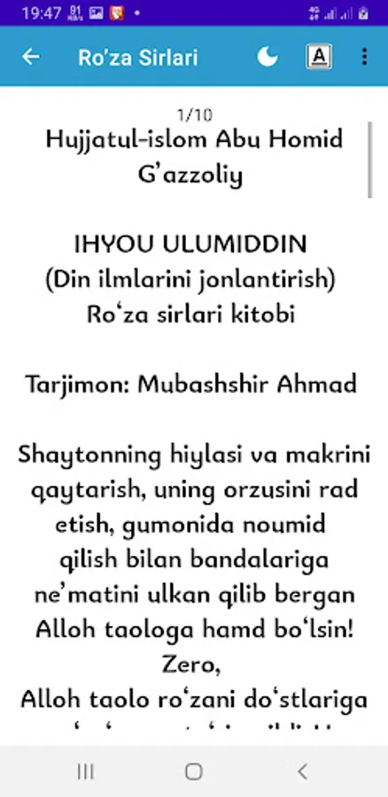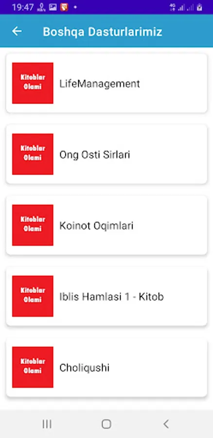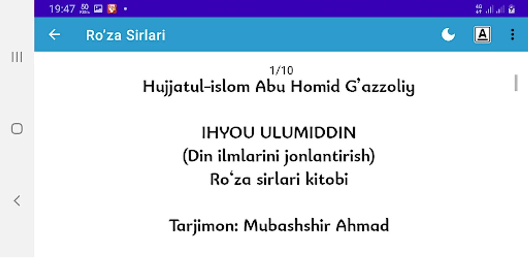 Bizning aziz kitobxonlarimiz uchun navbatdagi ajoyib kitob. Siz ushbu kitobdan o’qir ekansiz dungyoga boshqacha nigoh bilan qarashni boshlaysiz. O’zingiz uchun yangidan yangi fikrlarni kashf qilasiz. Siz uchun juda foydali kitob. Oxirigacha o’qishni maslaxat beramiz. Sizlarga ozgina foydamiz tekkan bo’lsa bundan biz juda xursandmiz. Kitoblar Olami yozuviga bosib bizning ko’plab boshqa dasturlarimizni yuklab olishingiz mumkin.