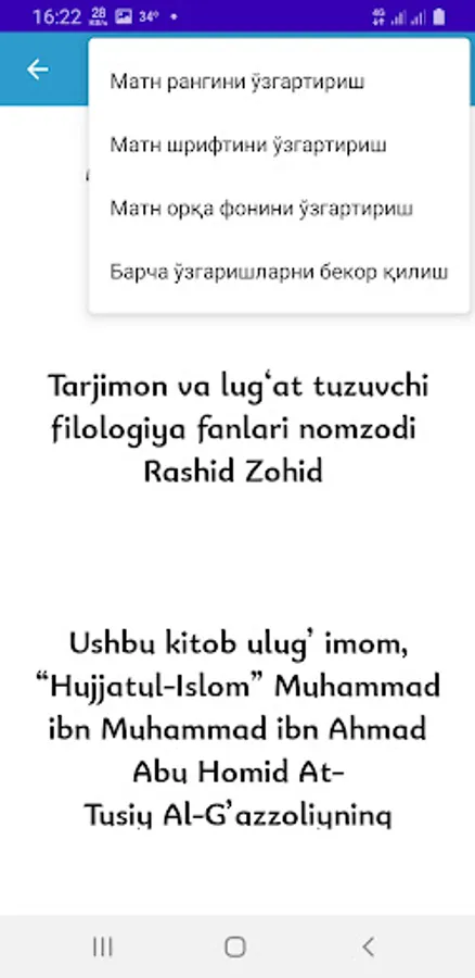 Hujjatul islom Abu Homid G’azzoliyning "Ihyou ulum-id-din" asaridan olingan ushbu kitob ham