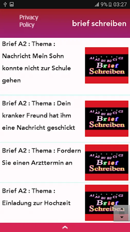 sie finden hier mehrere Briefe für vielfältige Niveau zum beispiel A2-B1-B2 Kostenlos